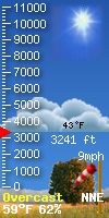 | 1 Rain season: Jan 1st to Dec 31st. 2 Snow season July 1st to June 30th. 3 Snow manually measured usually around 7AM and 7PM. 4 Updated at Noon. 5 Estimated amount of water needed to replace the water used by plants and evaporation from the past week. (Negative numbers mean amount of water needed, positive numbers mean excess water is present). 7 Leaf Wetness is surface moisture on foliage. 0 being totally dry and 15 being totally saturated. 8 Soil moisture and temperatures are from sensors burried in the ground at the levels specified. 9 Solar Index represents either an absolute scale of solar energy (W/m²) using the station’s recorded maximum or a percentage of computed theoretical solar maximum using the station’s location and time of day. These indices differ most when the sun is low on the horizon. The current scale is shown, and will toggle if it or the icon is clicked. 10 Historical average only to day 29 of just the month of April for this station since 2011. 11 Historical average rain this season to day 29 of April for this station since 2011. |